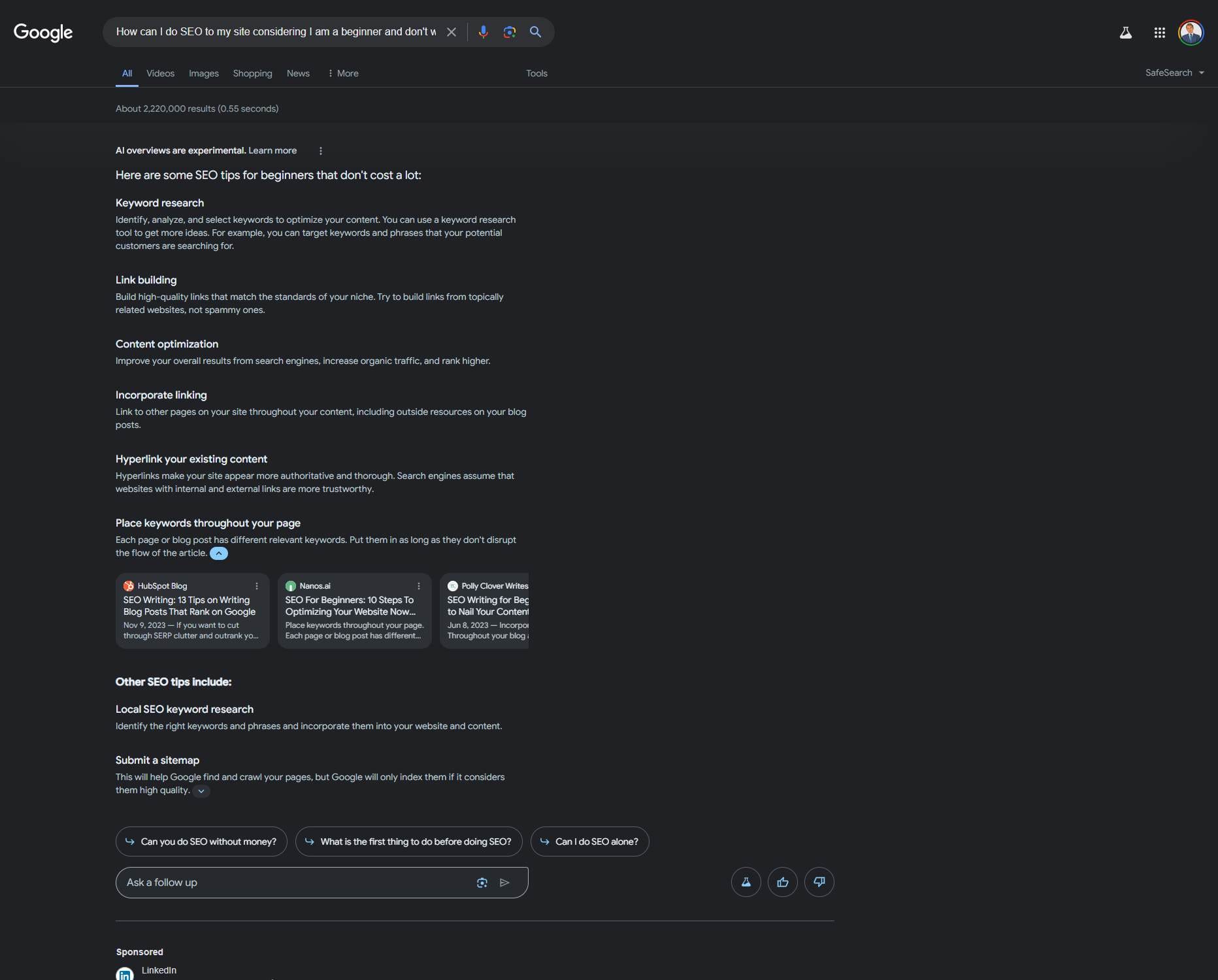 Tuttavia, Google non ha confermato se e quando le funzionalità SERP potrebbero essere ottimizzate per concentrarsi sul nuovo componente AI.