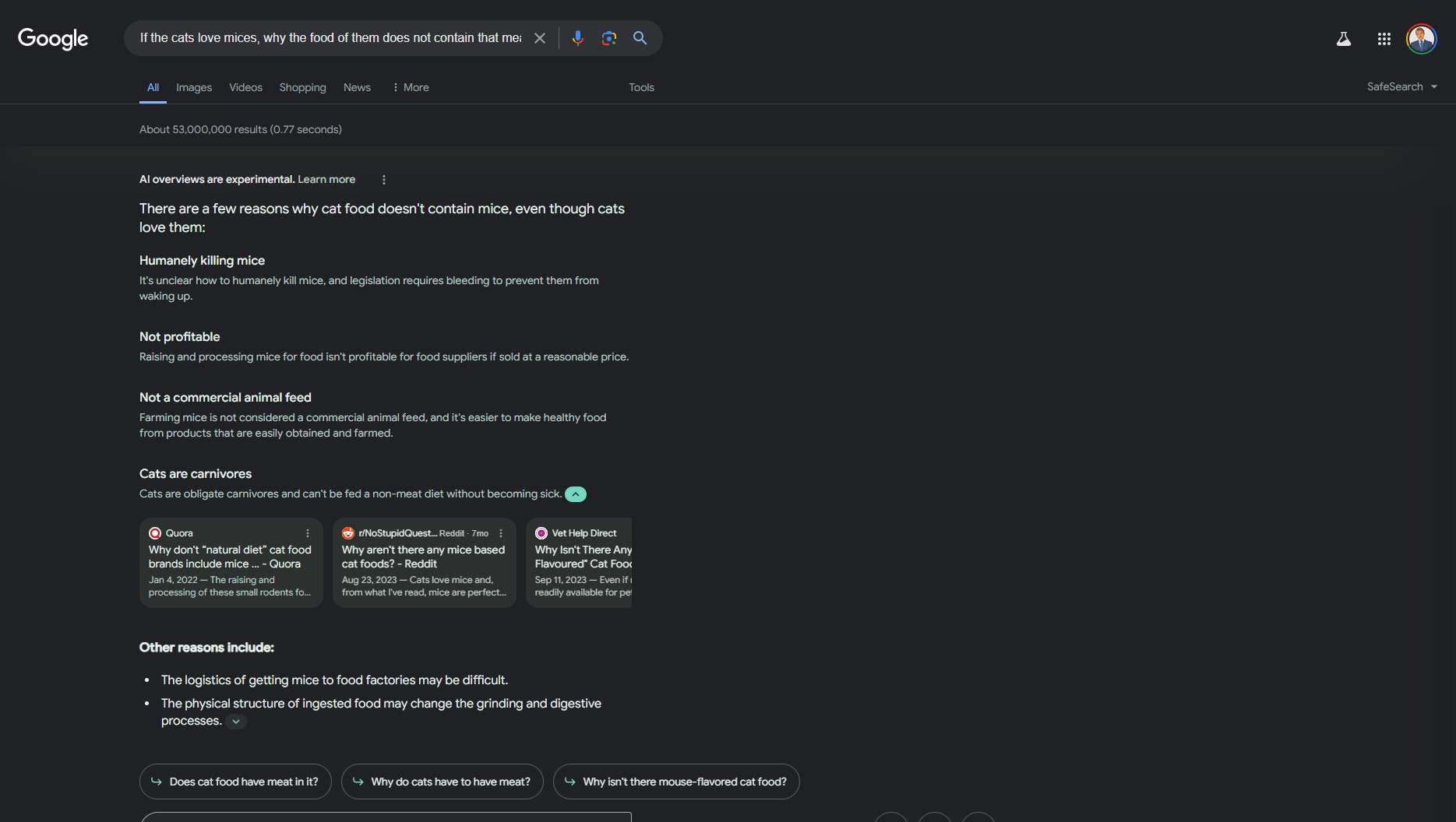 Da quello che sappiamo, gli snippet in primo piano appaiono proprio sotto il testo del chatbot, il che è interessante poiché entrambi mirano a riassumere rapidamente le informazioni sulla query dell’utente. Anche altre sezioni comuni della SERP, come i riquadri “people also ask” , i video, i rich snippet, i knowledge graph e i pacchetti locali sono ancora attivi.