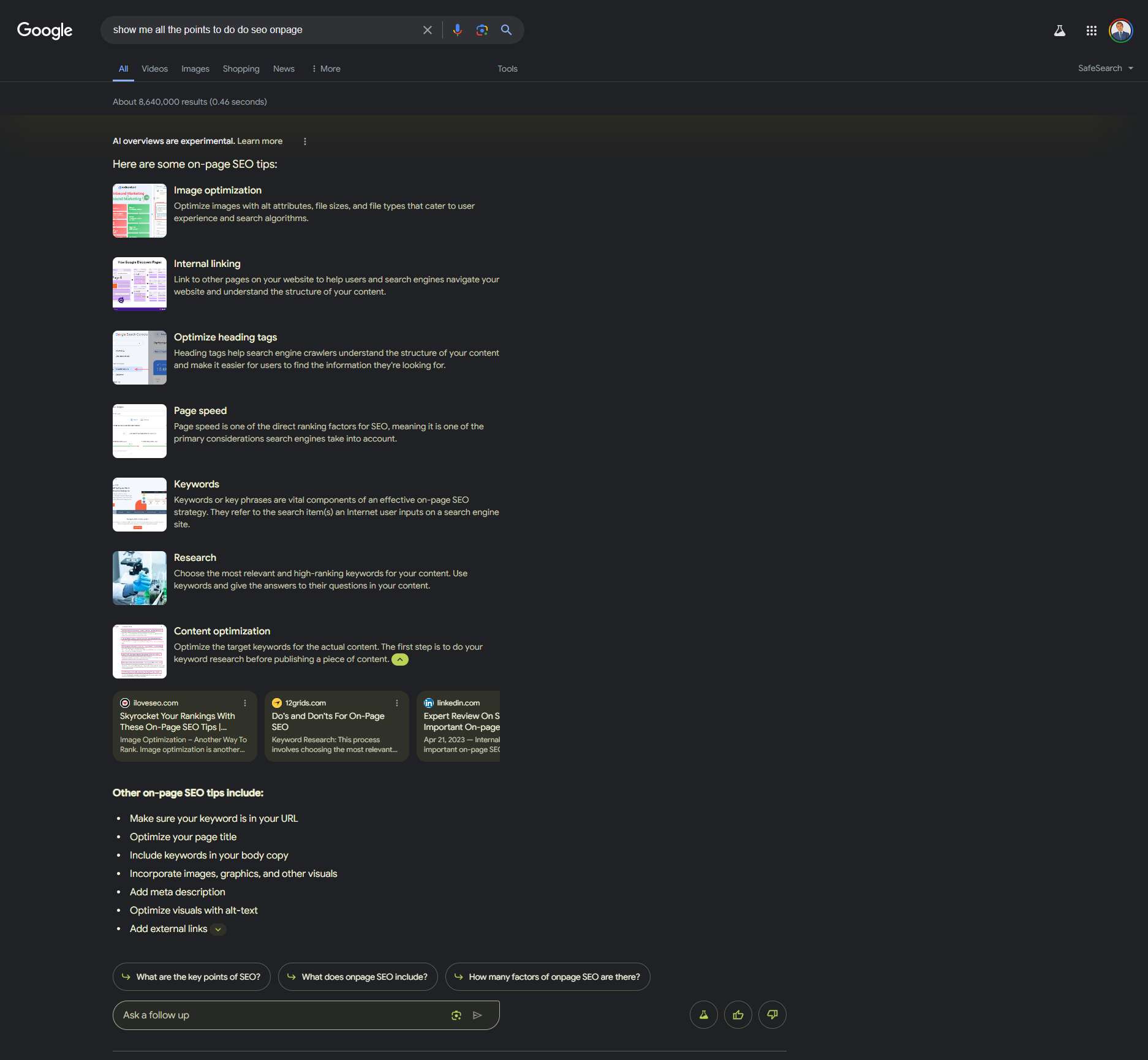 Oltre a ciò, ecco cosa ho notato durante la mia esperienza pratica con SGE di Google: